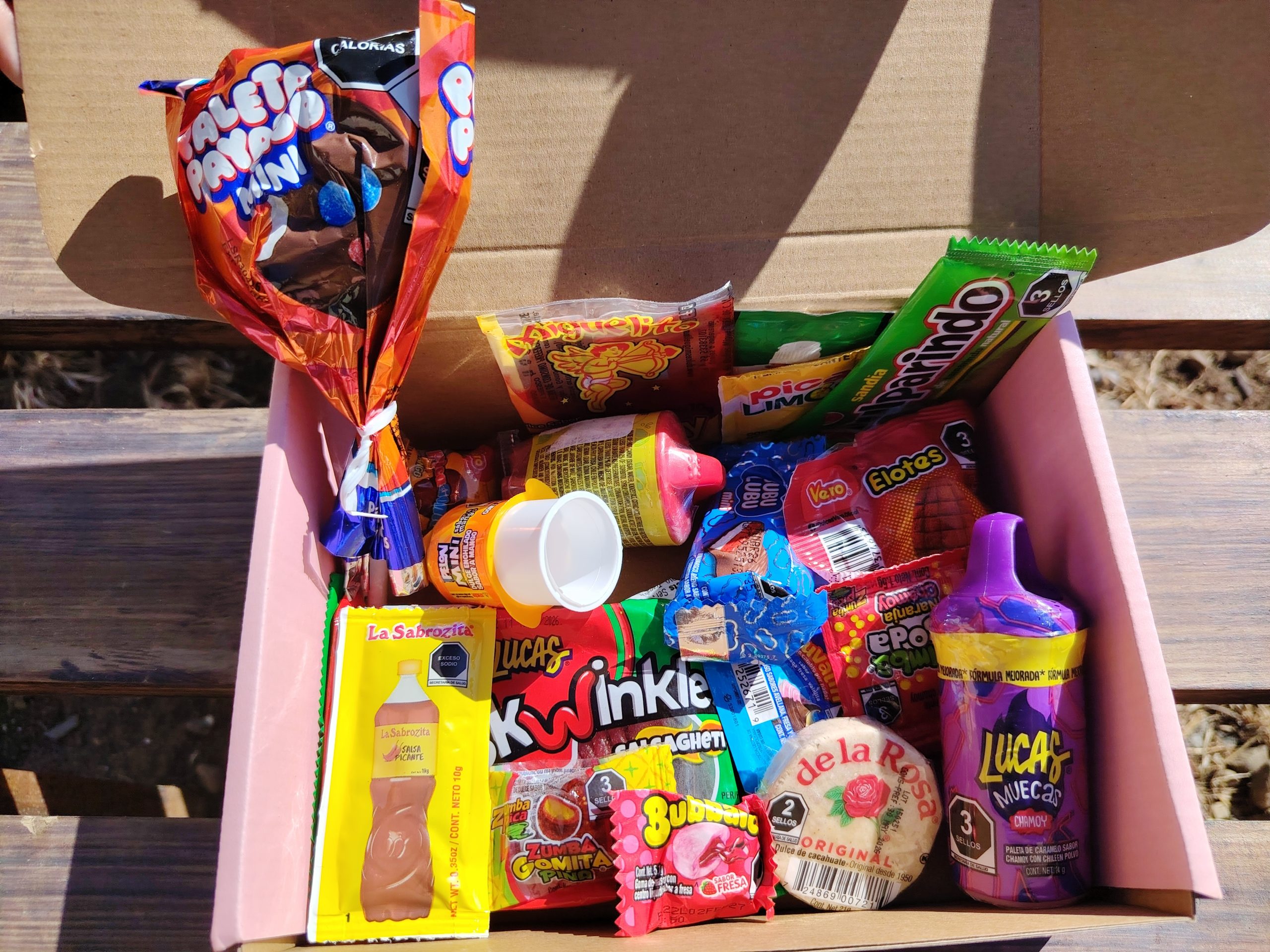 Contiene: Mini paleta payaso, mazapán, lucas muecas, pelón pelo rico, duvalin, bubulubu, pulparindo, lucas bombazo,skinwkles, chicle bubbaloo mini zumba gomita, pica goma, paleta de elote, sachet de soda, pica limón, tajin, chamoy, salsa botanera.